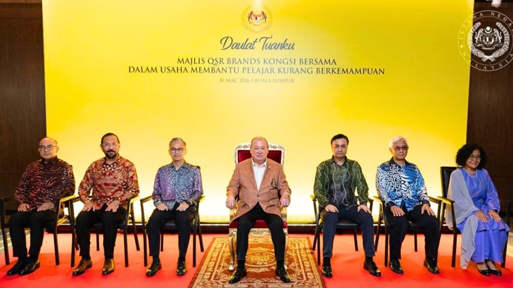 Yang di-Pertuan Agong berkenan berangkat menyempurnakan Majlis QSR Brands Kongsi Bersama yang turut dihadiri Menteri Komunikasi, Fahmi Fadzil.